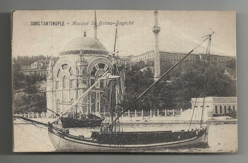 ** 1923 DOLMABAHÇE CAMİİ VE TEKNELER TEMALI ESKİ KARTPOSTAL ** 14 x 9 cm.ebadında,arkası tamamen Fransızca yazılı,gayet temiz durumda orijinal dönem baskısı kartpostaldır...