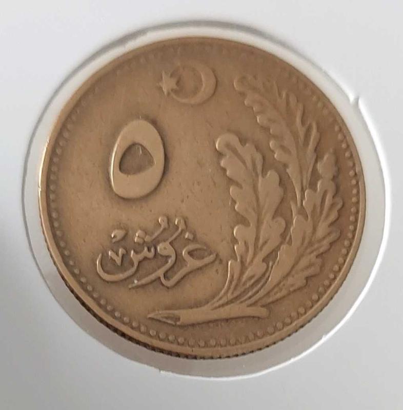 1925 (1341) OSMANLI ORİJİNAL BRONZ 5 KURUŞTUR. ÇAPI;22,50 MM DİR. AĞIRLIĞI;4 GRAMDIR. KALINLIĞI İSE;1,46 MM DİR. KONDİSYONU ÇOK ÇOK TEMİZ OLARAK DEĞERLENDİRİLMEKTEDİR. DİĞER TIRI VIRI ÜRÜNLERLE KARIŞTIRMAYINIZ. RESMİNİ GÖRDÜĞÜNÜZ ÜRÜN AYNEN GÖNDERİLİR. UYGUN FİYATLA SATIŞA SUNULMUŞTUR. TÜM ÜRÜNLERİMİZE BAKMANIZ MENFAATİNİZEDİR. SAYGILARIMIZLA.
