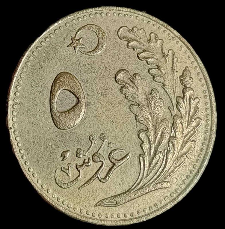 1925(1341) Osmanlı Dönemi son paralarından 5 Kuruş Çil