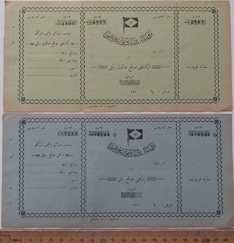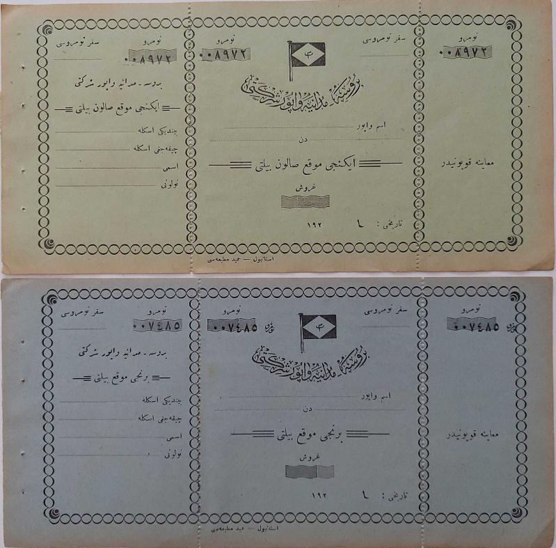 1927-28 OSMANLICA MUDANYA-BURSA ASKER-ÖĞRENCİ ORİJİNAL BİLETLERİDİR. 2 ADET BİLETTİR. AÇIK YEŞİL OLAN ASKERLERİN KULLANDIĞI AÇIK MAVİ OLAN BİLET İSE ÖĞRENCİLERİN KULLANDIĞI BİLETLERDİR. ÇOK NADİR ÜRÜNLERDENDİR. UYGUN FİYATLA SATIŞA SUNULMUŞTUR. RESMİNİ GÖRDÜĞÜNÜZ ÜRÜN AYNEN GÖNDERİLİR. DİĞER ÜRÜNLERİMİZE BAKMANIZ MENFAATİNİZEDİR. SAYGILARIMIZLA.