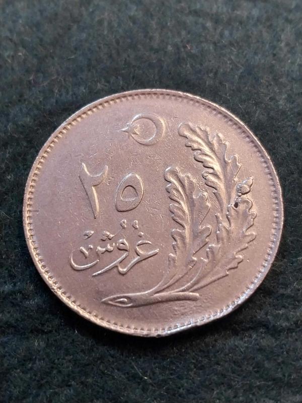 1928 yılında basılan 25 Kuruş; Türkiye Cumhuriyeti para kataloğu içerisinde bulunan Cumhuriyet (1923) dönemine ait paralardandır. İstanbul darphanesinde 5.794.000 adet basılmıştır. Paranın nadirlik derecesi BULUNABİLİR olarak sınıflandırılmıştır. Para; Nikel madeninden/bileşiminden imal edilmiştir. Bu paralar ortalama 10 gram ağırlığa ve 29.5 milimetre genişliğe sahiptir.