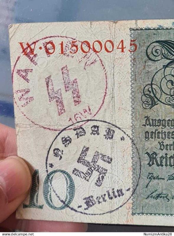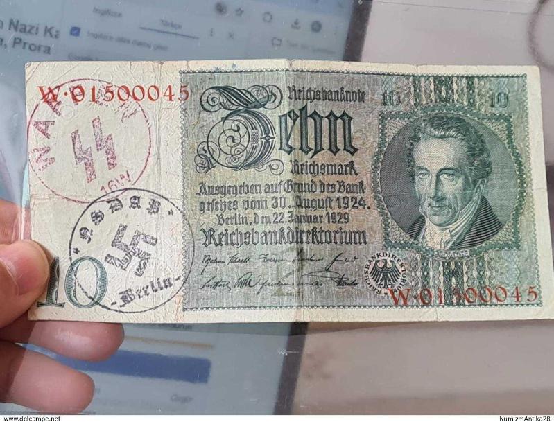 1929 10 Reichsmark – NSDAP & SS Damgalı Koleksiyonluk Alman Banknotu, 2 ay önce satışa sunulmuştur.