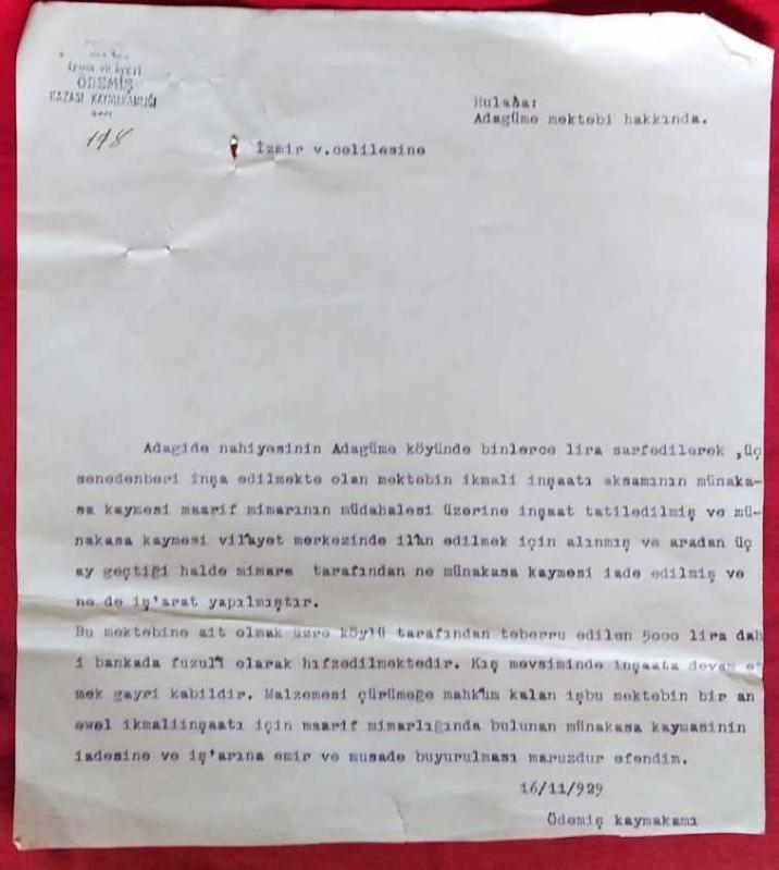1929 Tarihli T.C. İzmir Vilayeti Ödemiş Kazası Kaymakamlığı Mühürlü Adagüme Okulu'na Dair Evrak, en son 2 saat önce güncellenmiştir.