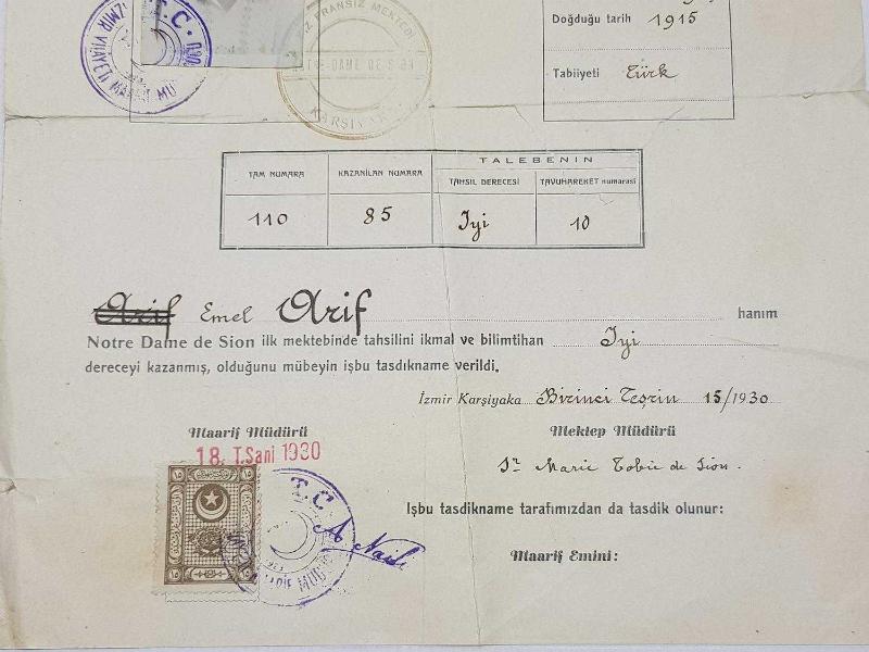 1930 TARİHLİ KARŞIYAKA FRANSIZ KIZ MEKTEBİ DİPLOMASI