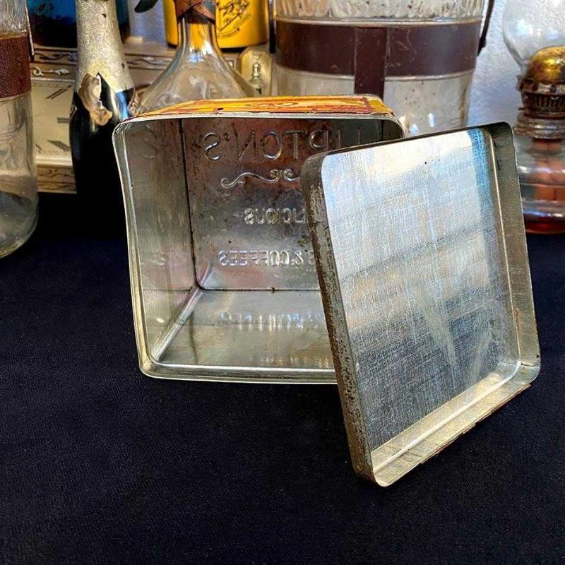 Teneke kutu severler ve dekoratif metal eşya koleksiyonerleri için nadir bir teneke kutu; İngiliz Liptons firmasının 1930'lardan orijinal kağıt etiketli çay kutusu. Kutu, firmanın İtalya dağıtımından, Venedik'ten günümüze ulaşmayı başarmış. Kutu yaşına göre iyi durumdadır. Metal yüzey biraz yıpranmış ama herhangi bir çatlak, delik vs yoktur. Kağıt etiket yer yer yırtılmış ama genel olarak iyi durumdadır. 11x11 cm 210 gr