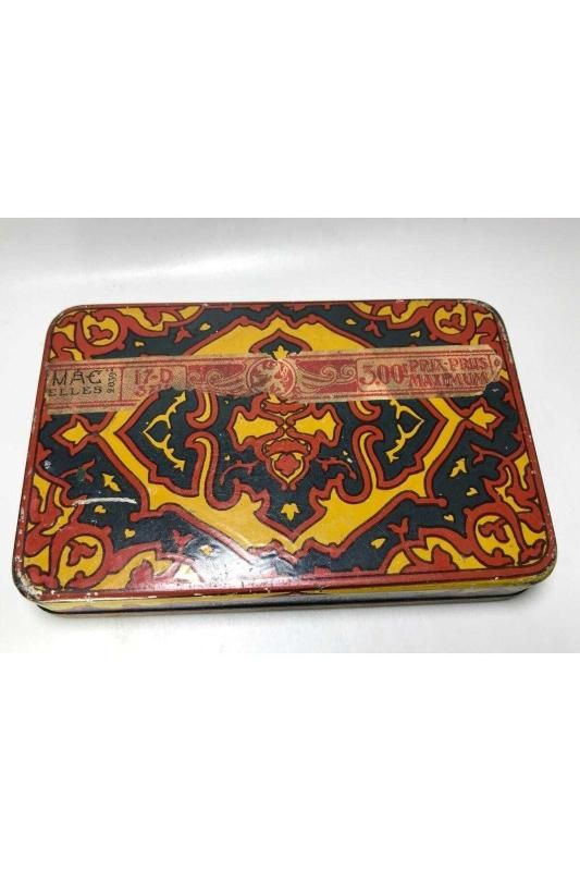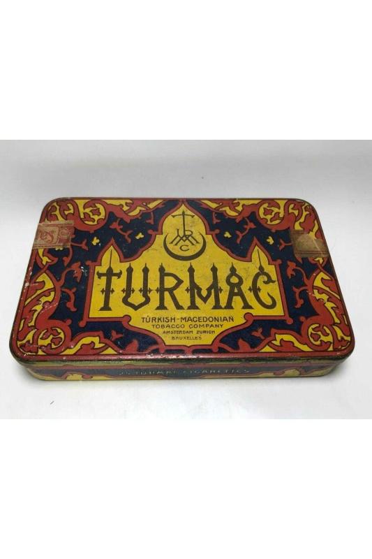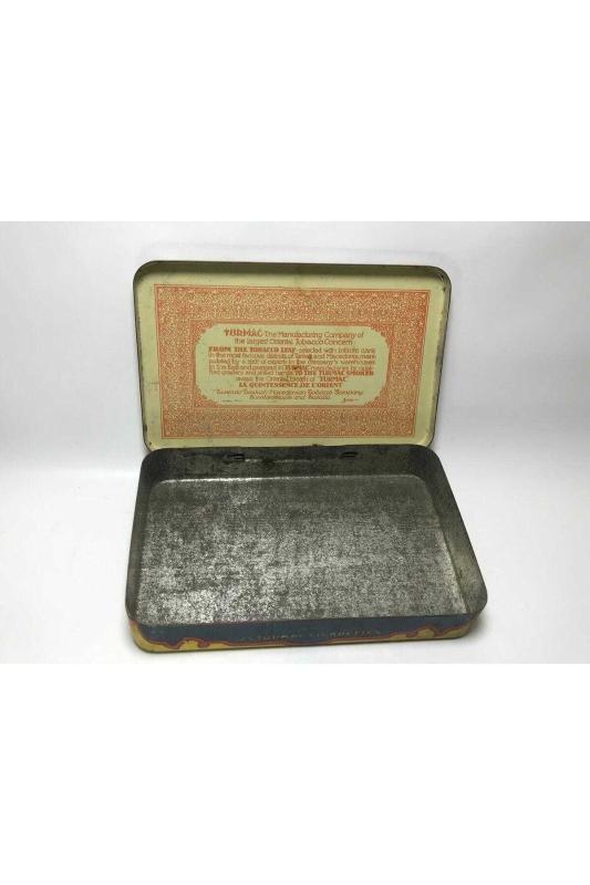 1930lar Turmac Teneke Tütün Kutusu 12 cm x 7,5 cm x 2 cm başlıklı antika/koleksiyon objesinin menşei belirtilmemiştir. Objenin ait olduğu dönem bilinmeketedir.