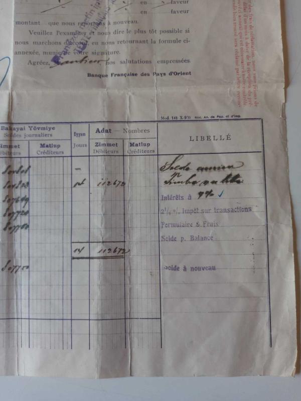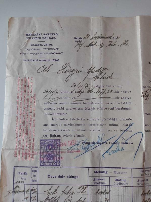 1931 MEMALİKİ ŞARKIYE FRANSIZ BANKASI BÜYÜK BOY EVRAK...