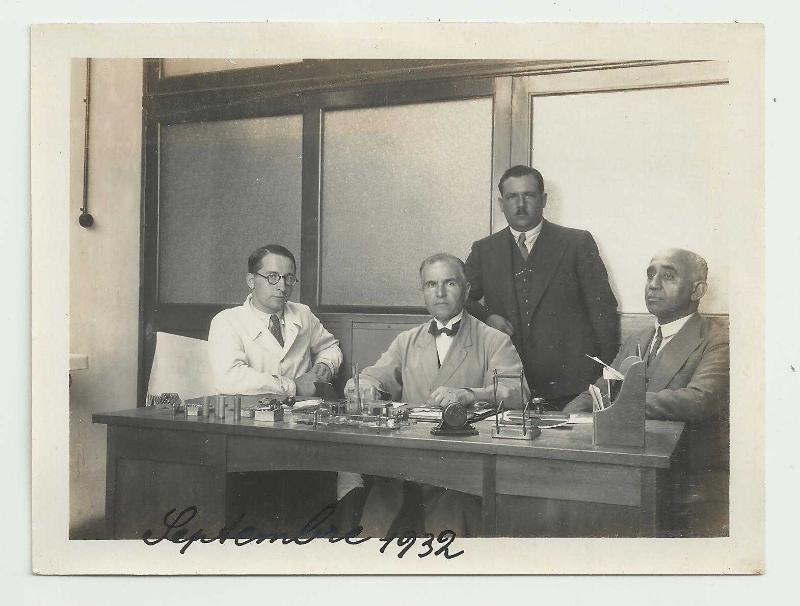 ** 1932 SENESİ SİLAH FABRİKASI YÖNETİCİLERİ MASA ETRAFINDA ORİJİNAL FOTOĞRAF ** 14 x 9 cm.ebadında,arkası yazısız,fotoğrafçı kaşesi görülen,son derece temiz durumda eski fotoğraftır. Mermi ve fişek üreten bir fabrikasının idarecileri...