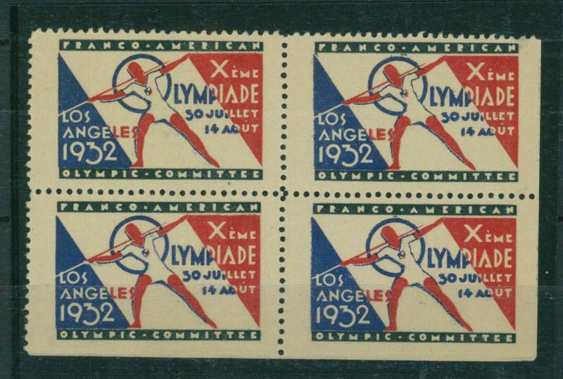 1932 Yılı Amerika Los Angeles Olimpiyat Oyunları Poster Pulu 4'lü Blok DBL