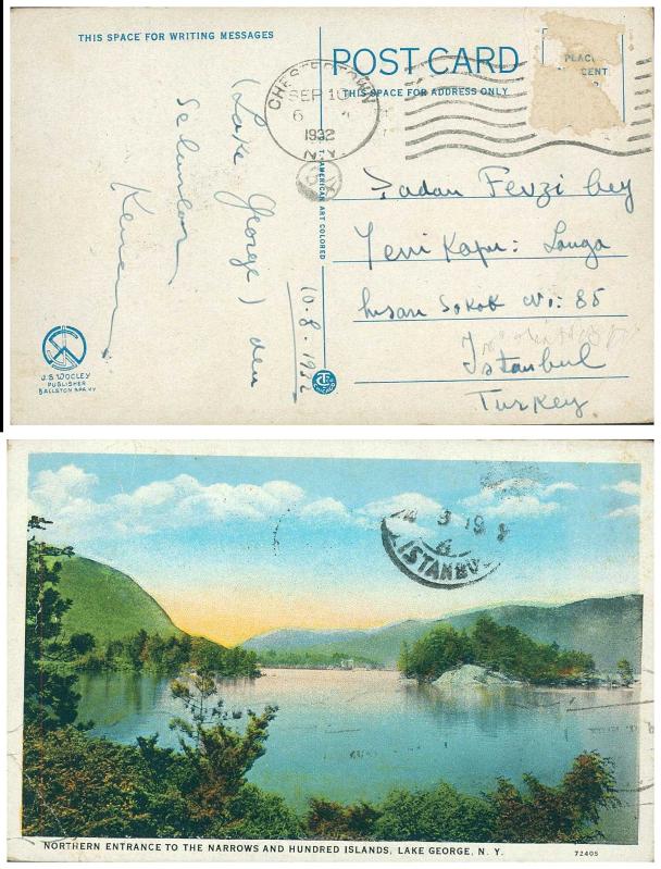 1932 Yılında Amerika Newyork'dan İstanbula Gönderimiş Çizim Kartpostal, bir ay önce satışa sunulmuştur.