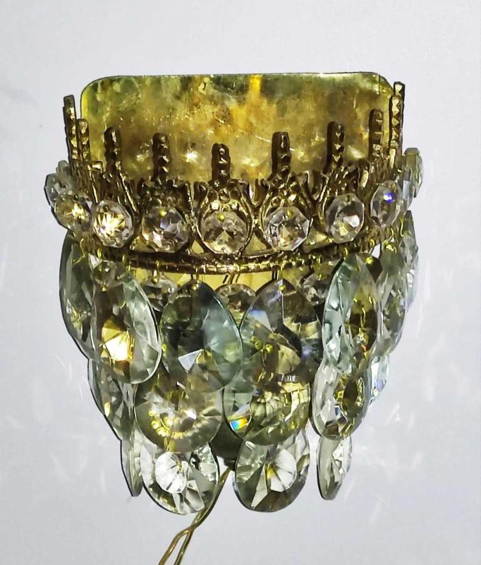 19342-ANTİKA PİRİNÇ KRİSTAL TAŞLI APLİK TAŞLAR GERÇEK KRİSTALDİR,ÇİN ÜRETİMİ DEĞİLDİR TÜM BAKIMLARI YAPILMIŞTIR DERİNLİK 11,5 CM