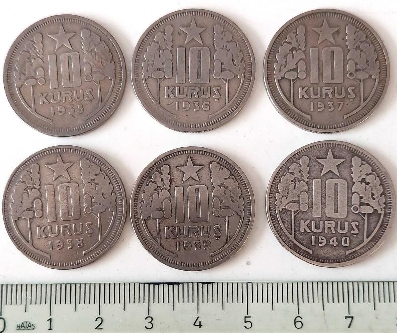 1935-1936-1937-1938-1939-1940 10 KURUŞ ORİJİNAL MADENİ PARA SETİDİR. HER BİRİNİN AĞIRLIĞI;6 GRAM, ÇAPI;25,50MM KALINLIĞI;1,40MM DİR. MADENLERİ NİKELDİR. KONDİSYONLARI ÇOK TEMİZ-ÇOK ÇOK TEMİZ OLARAK DEĞERLENDİRİLMEKTEDİR. KARGO İNDİRİMLİDİR. NADİR ÜRÜNLERDENDİR. BAŞKA TIRI VIRI PARALARLA KARIŞTIRMAYINIZ. RESMİNİ GÖRDÜĞÜNÜZ ÜRÜN GÖNDERİLİR. TÜM ÜRÜNLERİMİZE BAKMANIZ MENFAATİNİZEDİR. SAYGILARIMIZLA.