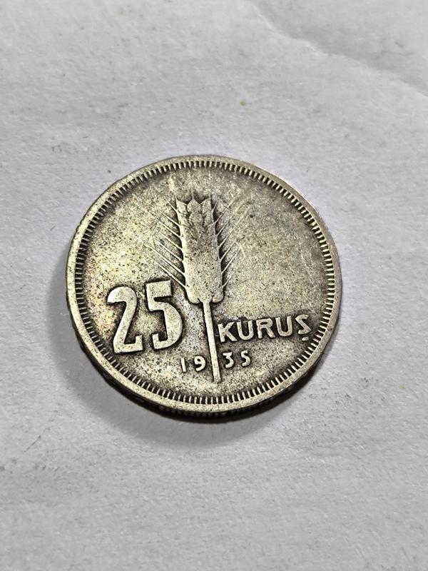 1935 Gümüş 25 Kuruş Çt kondüsyondadır, bir ay önce satışa sunulmuştur.