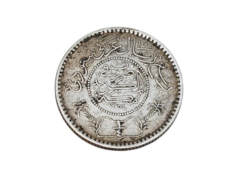 1354 (1935) TARİHLİ SUUDİ ARABİSTAN GÜMÜŞ 1/4 RİYAL ÇAP: 1,95 CM AĞIRLIK: 2,95 GRAM