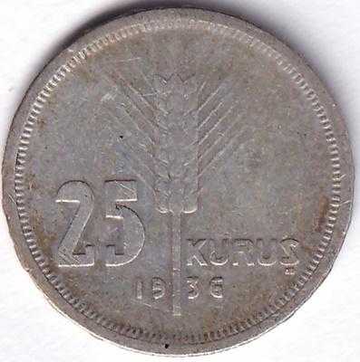 1936 25 KURUŞ ÇT GÜMÜŞ:3 GR, 3 gün önce satışa sunulmuştur.