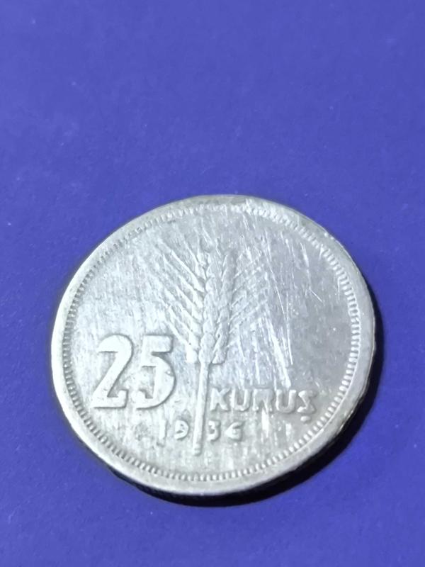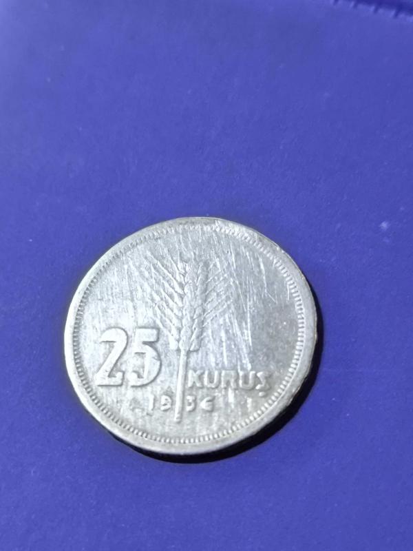 1936 Gümüş 25 Kuruş Orjinal Eski Para orjinaldir, 13 gün önce satışa sunulmuştur.