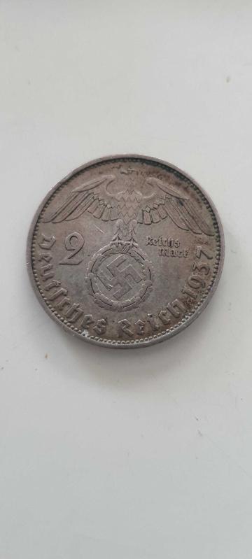 1937 Gümüş 2 Third Reich ReichsMark (Paul von Hindenburg Alman cumhurbaşkanı), 2 yıl önce satışa sunulmuştur.