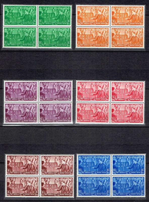 1938 HARF İNKILABININ 10. YILI KONULU TAM SERİ MNH DÖRTLÜ BLOK PULLAR. KATALOG DEĞERİ : 3200 TL SATIŞTA OLAN DİĞER ÜRÜNLERİME DE BAKINIZ..