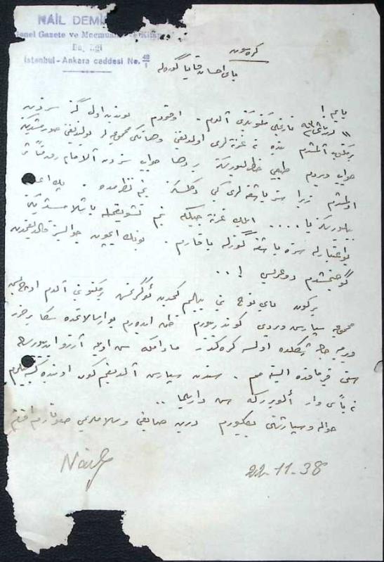 1938 NAİL DEMİR Genel Gazete ve Mecmua Kitap Bayiliği Islak İmzalı Osmanlıca Bildiri EFM(N)11564, en son 17 gün önce güncellenmiştir.