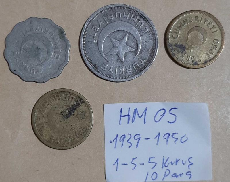 1939 - 1950 1 - 5 - 5 kuruş ve 10 Para Set HM-05 Para Koleksiyonu