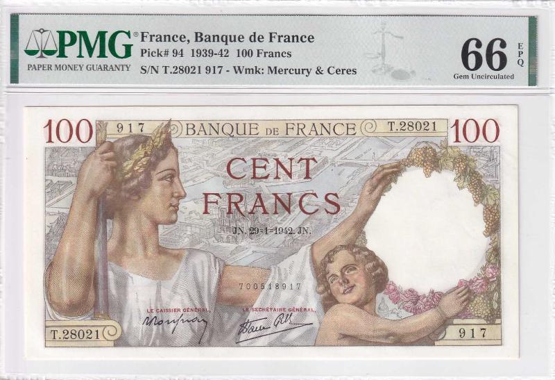 1939-42 Fransa 100 Francs PMG66 ÇİL Diğer ürünlerimize bakmayı unutmayın ;)