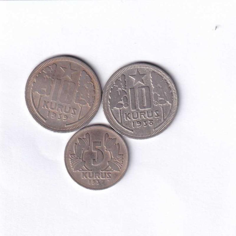 1939 yılı 10 kuruş, 1938 yılı 10 kuruş ve 1937 yılı 5 kuruş toplam 3 adet para durumları resimlerde görüldüğü gibidir.