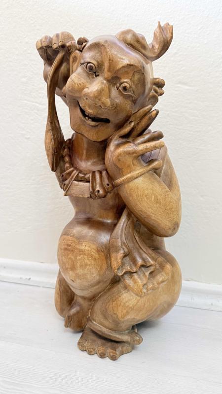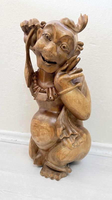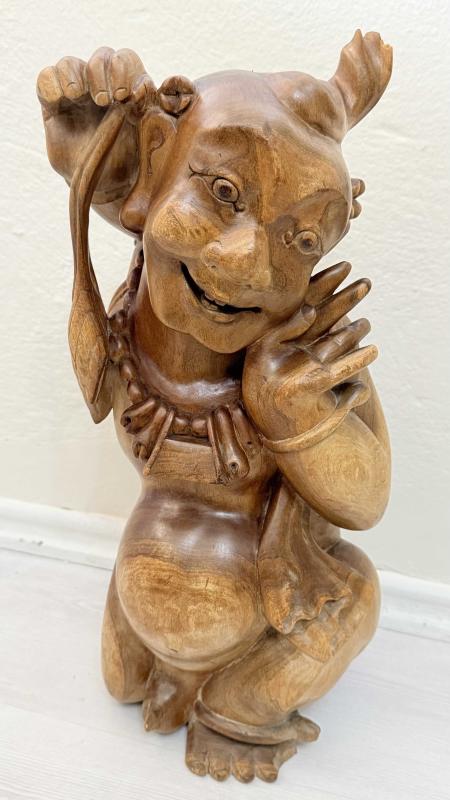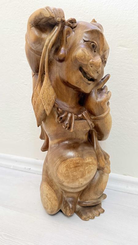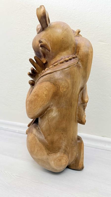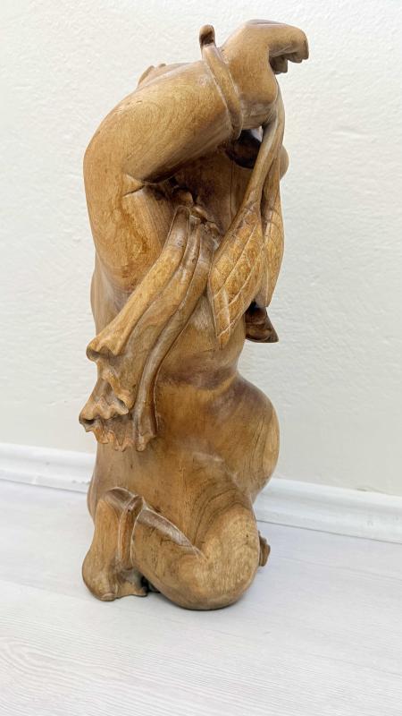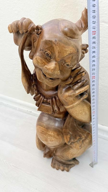 Masif Ağaç el oyma sanatı 45 santimetre boyunda kusursuz 1940 50 ler dönemi dekoratif sanırım budizim inancına yönelik yapılmış bi eser de boyda oymalar kusursuz tamamen ele yapılmış dönem eseri