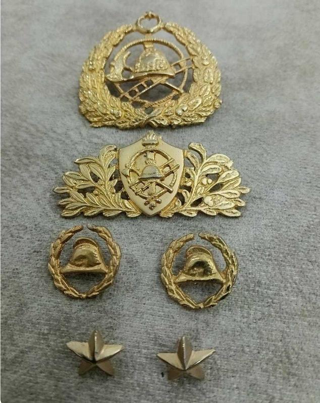 1940/1950 lerden eski itfaiyeci kokartları, rozetleri ve brövelerinden oluşan bir koleksiyon grubu. İçerik: İtfaiyeci kaskı ve merdiven temalı kokartlar, rozetler ve apolet yıldızları. Kullanım: Bu tür objeler tarihsel olarak üniformalarda mesleki bröve veya rozet olarak kullanılmıştır. Koleksiyon Değeri: Genellikle antika veya hobi amaçlı koleksiyoncular için değer taşırlar. başlıklı antika/koleksiyon objesi Türkiye menşe’lidir. 1940-1959 arası dönemine aittir.