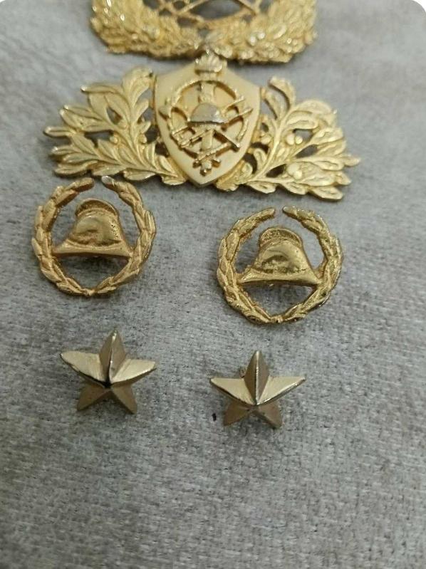 1940/1950 lerden eski itfaiyeci kokartları, rozetleri ve brövelerinden oluşan bir koleksiyon grubu. İçerik: İtfaiyeci kaskı ve merdiven temalı kokartlar, rozetler ve apolet yıldızları. Kullanım: Bu tür objeler tarihsel olarak üniformalarda mesleki bröve veya rozet olarak kullanılmıştır. Koleksiyon Değeri: Genellikle antika veya hobi amaçlı koleksiyoncular için değer taşırlar..