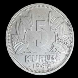 1942 5 Kuruş başlıklı ürün, Efemera, Müzik, Sinema > Nümismatik, Para, Madalya > Madeni Paralar > Cumhuriyet Dönemi > 1934-1957 Dönemi kategorisi altında İkinci El olarak satılmaktadır.