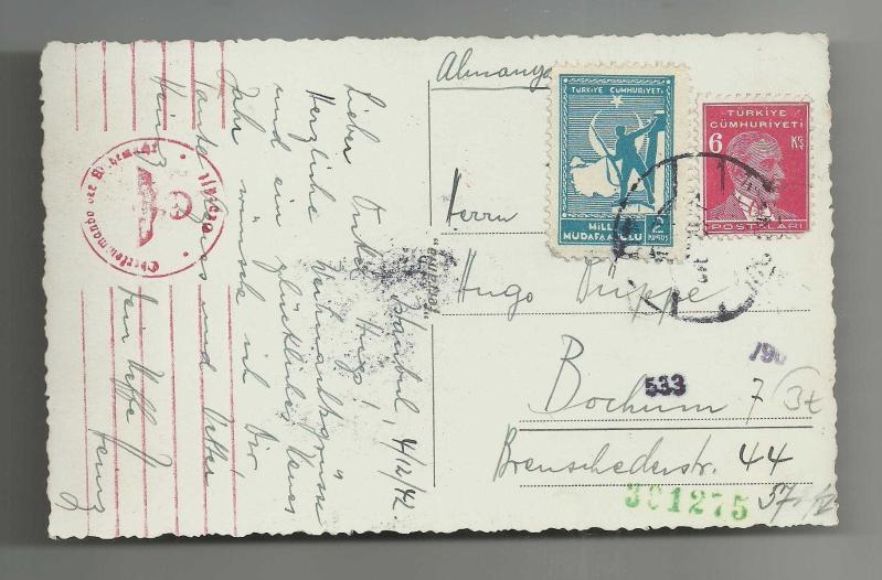 ** NAZİ DAMGALI KIZ KULESİ KARTPOSTALI ** Çok iyi kondüsyonda,14 x 8.8 cm.ebadında, 4 Aralık 1942 tarihinde İstanbul'dan Almanya Bochum'a yollanmış, arkası yazılı,postadan geçmiş,ayrıca Nazi damgalı nadir bir karttır...