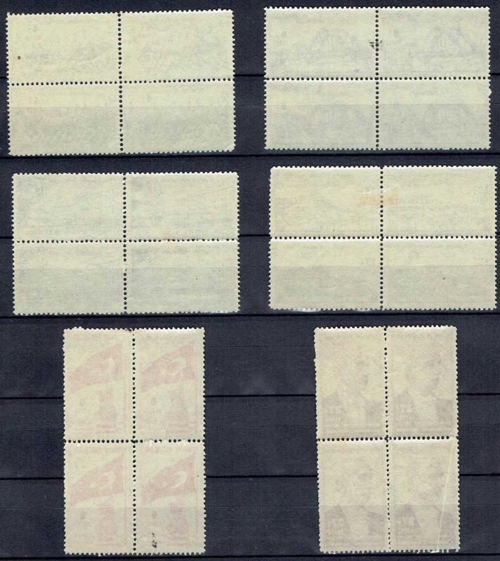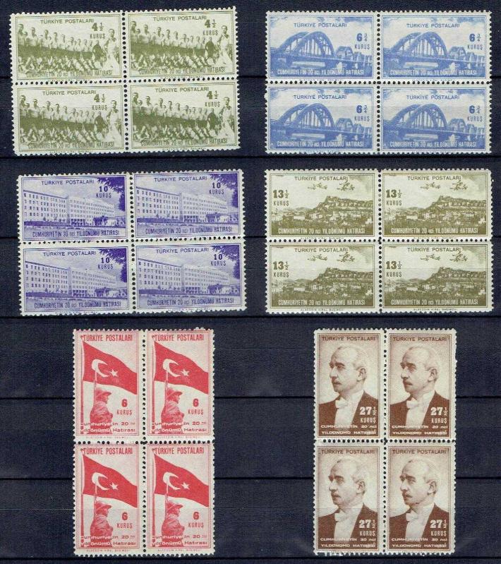 1943 CUMHURİYETİN KURULUŞUNUN 20. YILI DÖRTLÜ BLOK PULLAR. PULLARIN ARKA YÜZ FOTOĞRAFLARI DA EKLENMİŞTİR.