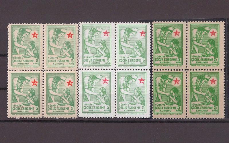 1945-1946 Türkiye Çocuk Esirgeme Kurumu 5 Kuruş Şefkat pulu 4'lü Blok Mnh Lüks Tam Seri ( 3 Farklı Kağıda Basımı) ÇOK NADİR! 3 Farklı Kağıda Basılmış 4'lü Blok TP323