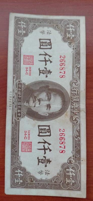 1945 JAPON İŞGAL DÖNEMİ ÇİN 1000 YUAN AZ ÇIKAR, 10 gün önce satışa sunulmuştur.