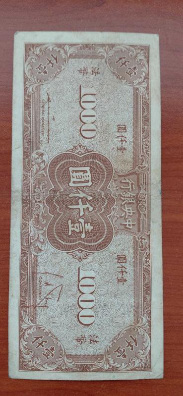 1945 JAPON İŞGAL DÖNEMİ ÇİN 1000 YUAN AZ ÇIKAR