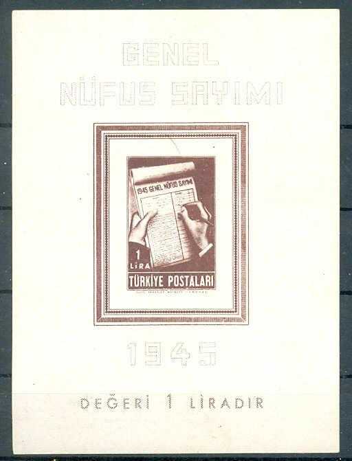 1945 NÜFUS SAYIMI HATIRA BLOKU DAMGASIZ ŞARNİYERSİZ ... TÜM ÜRÜNLERİMİZ ALICISINA FATURASI İLE GÖNDERİLECEKTİR.....