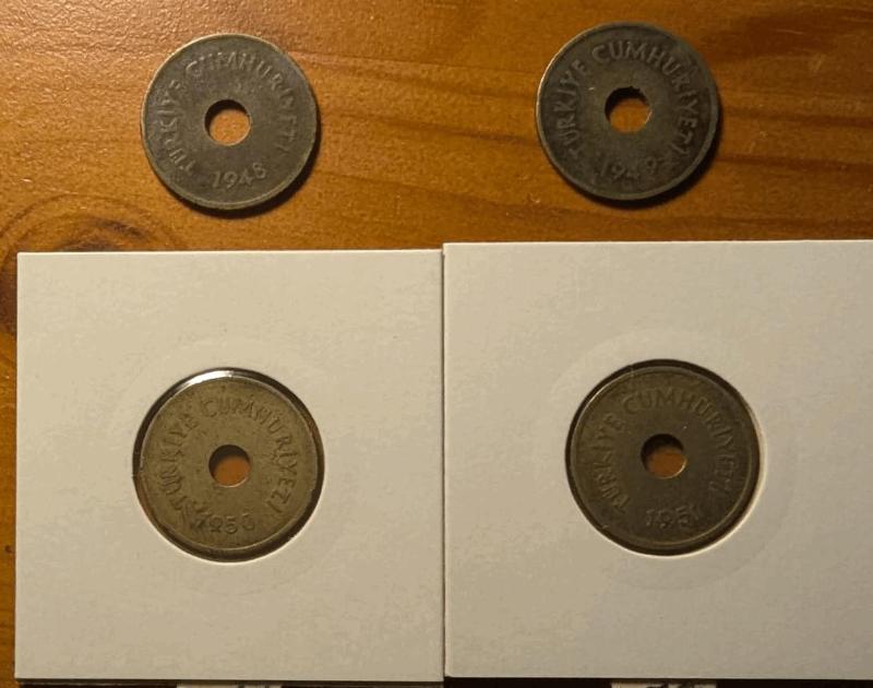 İkinici el seri olarak hazırlanmıştır. 2,5 Kuruş, 1948, 1949 1950, 1951 (Kaplama içinde) Fotoğraftaki ürünler gönderilecektir. Fatura kesilmeyecektir.