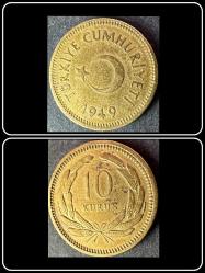 1949 10 KURUŞ ÇÇT++ / TCM949 / T.C TERS