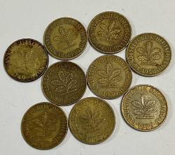 1949-1950-1979-1987 Almanya 10 pfennig 9 adet madeni para karışık ÇÇT/ÇT