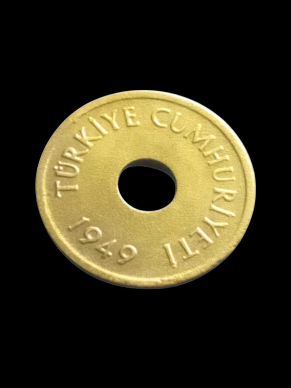 LOT.124 » 1949 DELİKLİ 1 KURUŞ CUMHURİYET DÖNEMİ MADENİ KOLEKSİYON PARA.