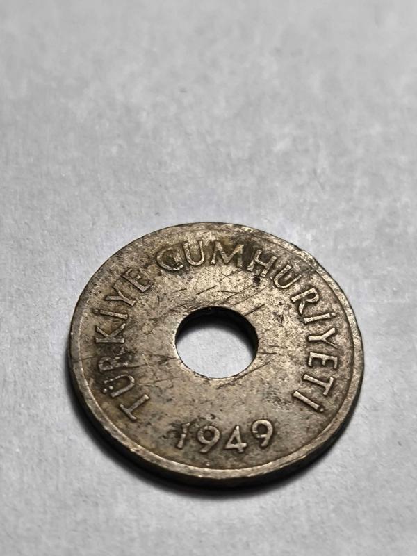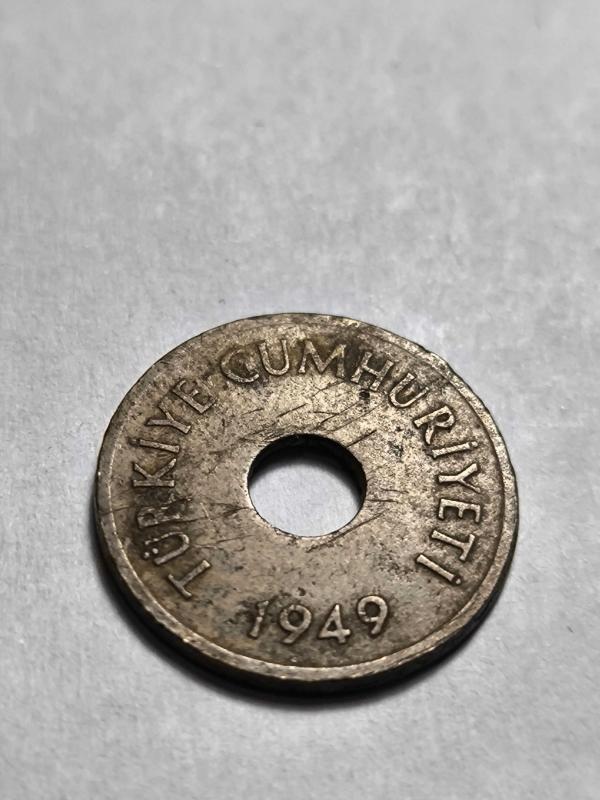 1949 Delikli 1 kuruş orjinaldir, 3 ay önce satışa sunulmuştur.