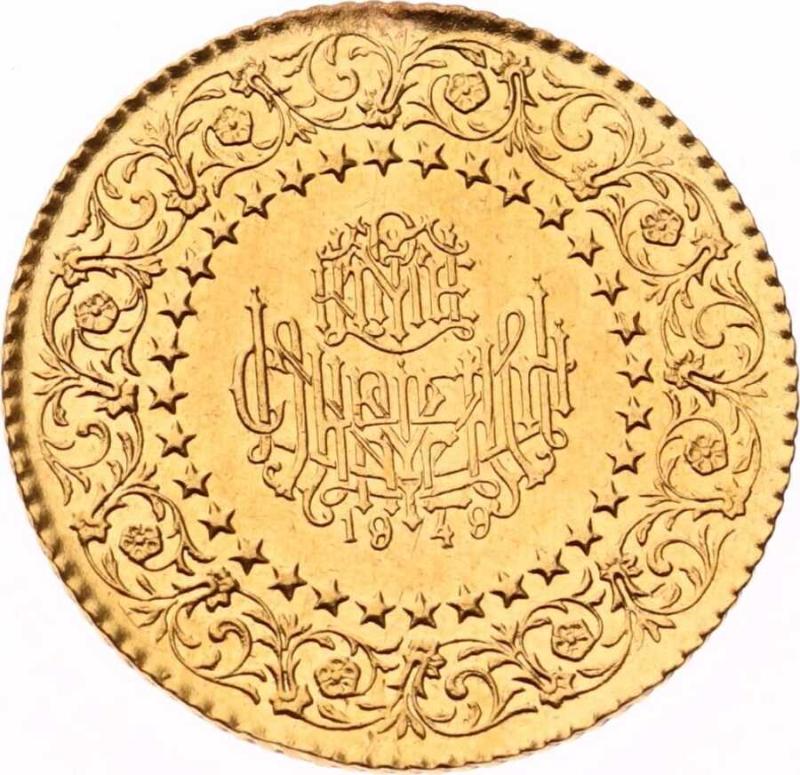 Kondisyonu Kulptan Çıkma Tarih 1949 Kulp Durumu Kulptan Çıkma Madeni Altın/Ziynet Ayar 22 Ağırlık 3.50 gr Sitemiz Siz Değerli Müşterilerimize Ürünlerde %100 Orjinallik Garantisi. % 100 Satış Sonrası Güven Garantisi Vermektedir. Titizlikle Ekspertiz Edilip Resimdeki Ürün Faturasıyla Birlikte Gönderilmektedir. Ürünlerimiz Aynı Gün veya Ertesi Gün Kargo Edilir. Sitemizden Yapmış Olduğunuz Alışverişlerde Herhangi Bir Sorunla Karşılaşmanız Durumunda Ürünlerimiz Bizim Tarafımızdan Garantilidir. Bizi Tercih Ettiğiniz İçin Teşekkür Ederiz... ZİYNET Arapça kökenli bir sözcük olup, süs ve bezek anlamına gelmektedir. Takı amaçlı kullanılan altına verilen genel addır. Darphane tarafından çıkarılan Cumhuriyet ziynet altınları, genel olarak takı amaçlı olarak alınan ve ülkemiz toplumsal yapısında da evli kadının güvencesi olarak görülen altınlardır.