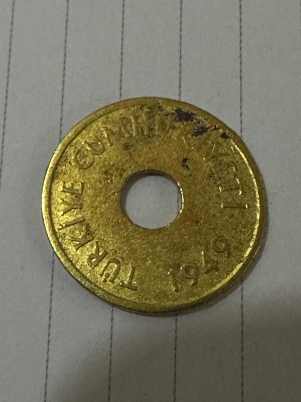 1949 TC 1 kuruş delikli madeni para ÇT