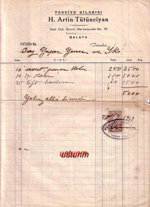 1949 TESVİYE CİLACISI H.ARTİN TÜTÜNCİYAN FATURA..., en son 5 ay önce güncellenmiştir.