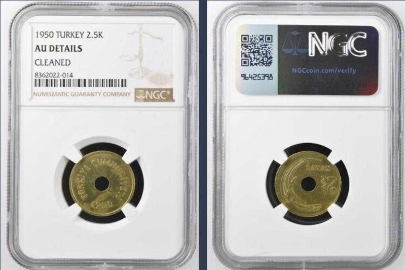 1950 2.5 kuruş ,delikli (çilaltı) NGC AU sertifikalı