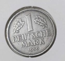 1950-F BATI ALMANYA DEUTSCHE 1 MARK ORİJİNAL MADENİ PARASI NADİR HARFLISI ÇİLALTI 3T2Y5M ÇOK NADİR