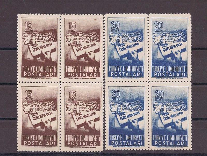 1950 Nüfus Sayımı 4'lü Pul Mnh Lüks Tam Seri TCD