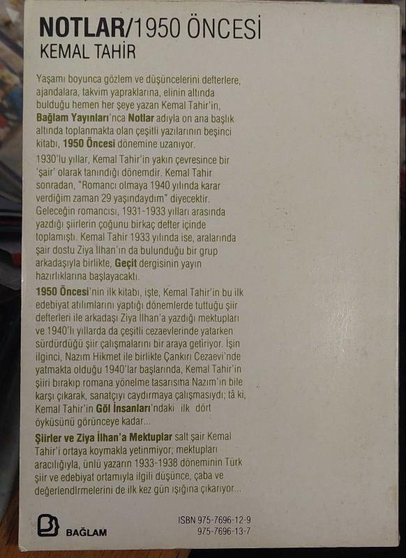 ... "1950 Öncesi"nin ilk kitabı, işte, Kemal Tahir'in bu ilk edebiyat atılımlarını yaptığı dönemlerde tuttuğu şiir defterleri ile arkadaşı Ziya İlhan'a yazdığı mektupları ve 1940'lı yıllarda da çeşitli cezaevlerinde yatarken sürdürdüğü şiir çalışmalarını bir araya getiriyor. İşin ilginci, Nazım Hikmet ile birlikte Çankırı Cezaevi'nde yatmakta olduğu 1940'lar başlarında, Kemal Tahir'in şiiri bırakıp romana yönelme tasarısına Nazım'ın bile karşı çıkarak, sanatçıyı caydırmaya çalışmasıydı; ta ki, Kemal Tahir'in "Göl İnsanları"ndaki ilk dört öyküsünü görünceye kadar... "Şiirler ve Ziya İlhan'a Mektuplar" salt şair Kemal Tahir'i ortaya koymakla yetinmiyor; mektupları aracılığıyla, ünlü yazarın 1933-1938 döneminin Türk şiir ve edebiyat ortamıyla ilgili düşünce, çaba ve değerlendirmelerini de ilk kez gün ışığına çıkarıyor.