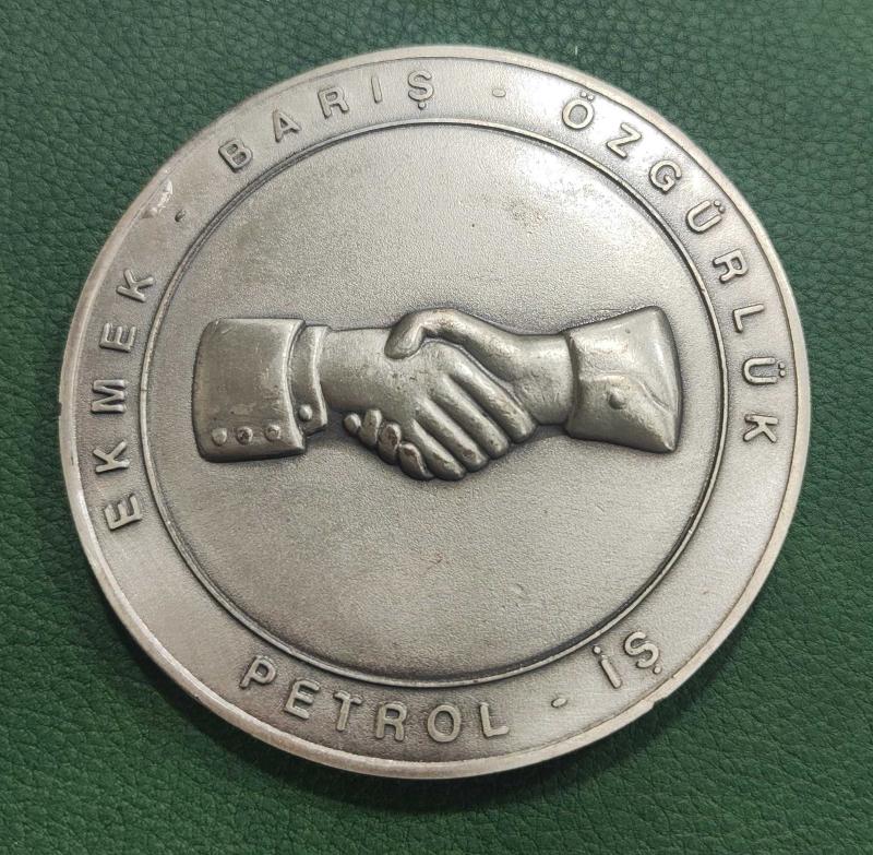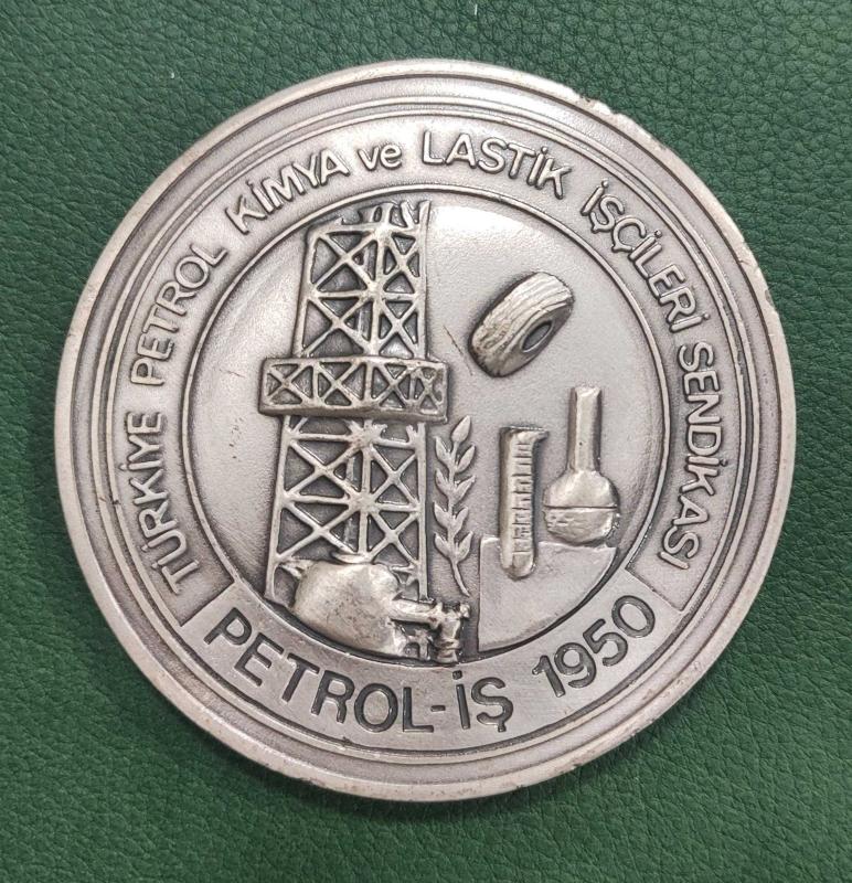 1950 PETROL-İŞ TÜRKİYE PETROL KİMYA VE LASTİK İŞÇİLERİ SENDİKASI NADİR MADALYA ÇAP: 8 CM, en son 2 yıl önce güncellenmiştir.