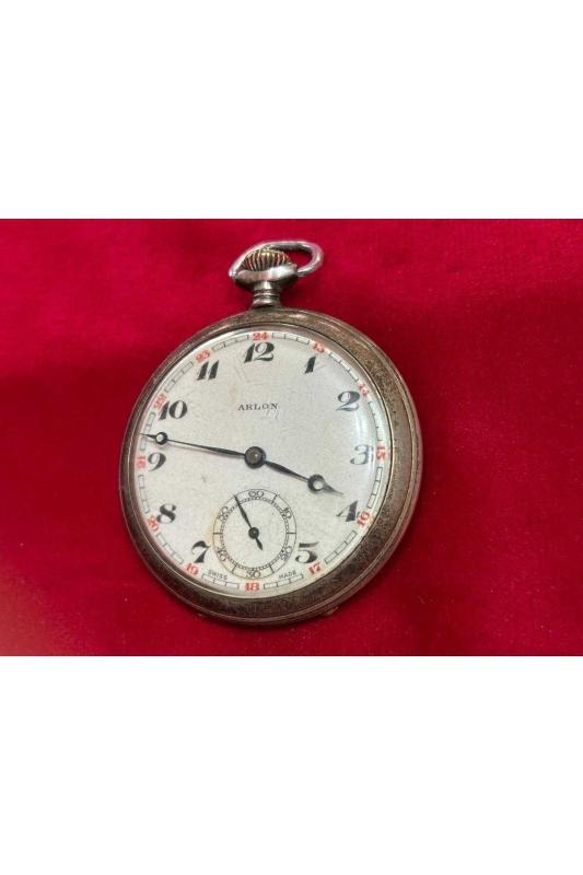 1950's arlon isviçre 900 ayar gümüş kasalı cep saati - 5 cm çapında - sorunsuz çalışır durumda başlıklı antika/koleksiyon objesinin menşei belirtilmemiştir. Objenin ait olduğu dönem bilinmeketedir.